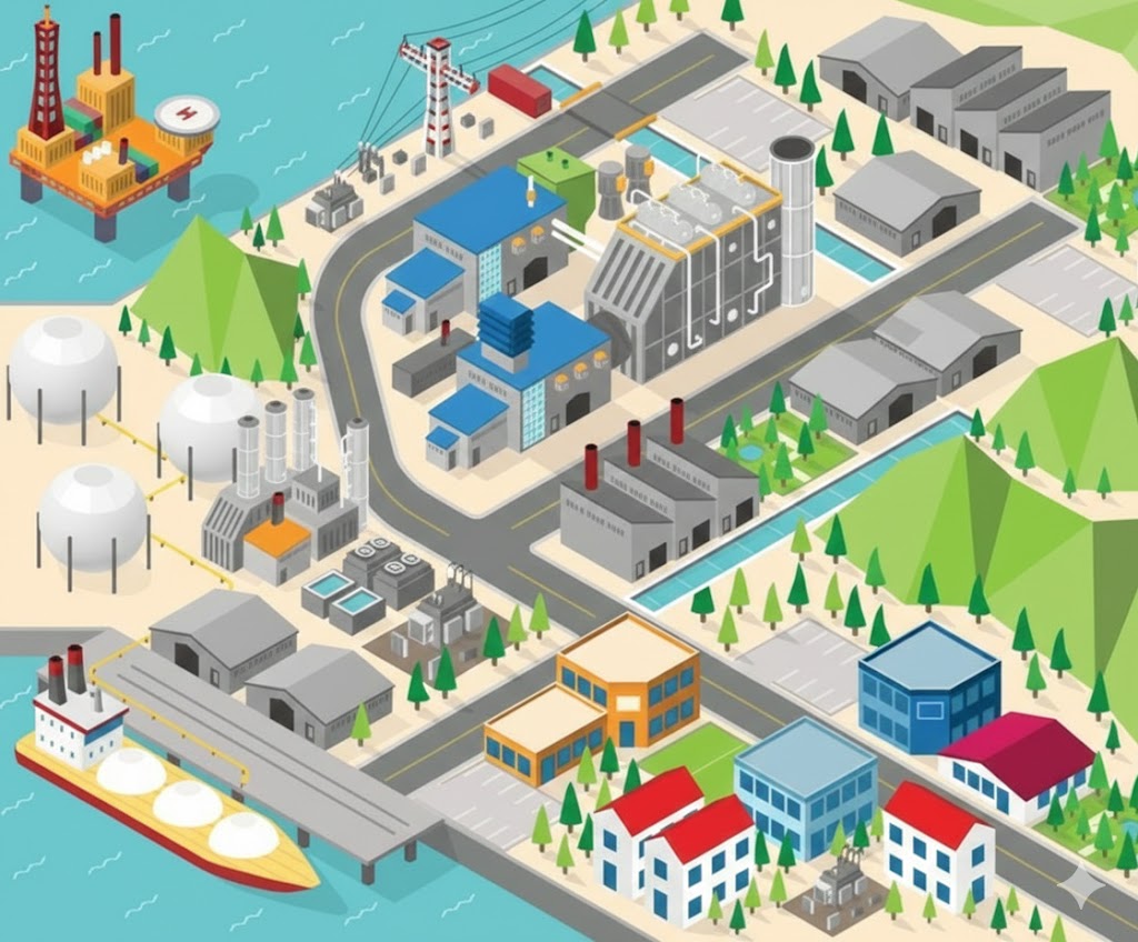Las Centrales de Ciclo Combinado (CCC) constituyen instalaciones estratégicas para la generación y el suministro continuo de energía eléctrica, debido a su alta eficiencia operativa y confiabilidad. Su principio de funcionamiento se basa en la integración secuencial de dos ciclos termodinámicos: un ciclo de turbina de gas y un ciclo de vapor. En el primero, el gas natural es utilizado como combustible para accionar una turbina de gas acoplada a un generador eléctrico. Los gases de combustión resultantes, que se descargan a elevadas temperaturas, son aprovechados en una caldera de recuperación de calor (HRSG, por sus siglas en inglés) para la producción de vapor sobrecalentado de alta energía, el cual impulsa una turbina de vapor conectada a un segundo generador eléctrico, optimizando así el rendimiento global del proceso de generación.